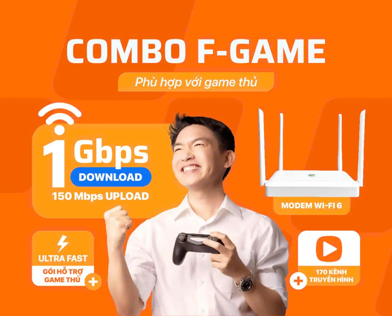 Gói Combo F-Game mang đến Internet tốc độ cao, ổn định, giảm độ trễ tới 16ms, lý tưởng cho gaming không giật lag và 30+ tựa game hot. Xem hơn 130 kênh truyền hình hấp dẫn, cập nhật Esports và các giải đấu trực tiếp đầy kịch tính. Nhận ngay 90N trải nghiệm F-Safe cơ bản – Quản lý thiết bị truy cập mạng dễ dàng – Đặt lịch chặn Internet và lọc nội dung cơ bản ngay trên Hi FPT (Áp dụng Hà Nội & HCM)